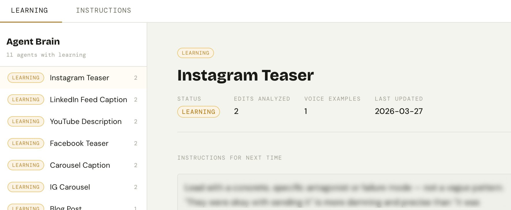Once a letter is marked complete, every sub-agent records its learnings from that session: what worked, what didn’t, and what needed correction.