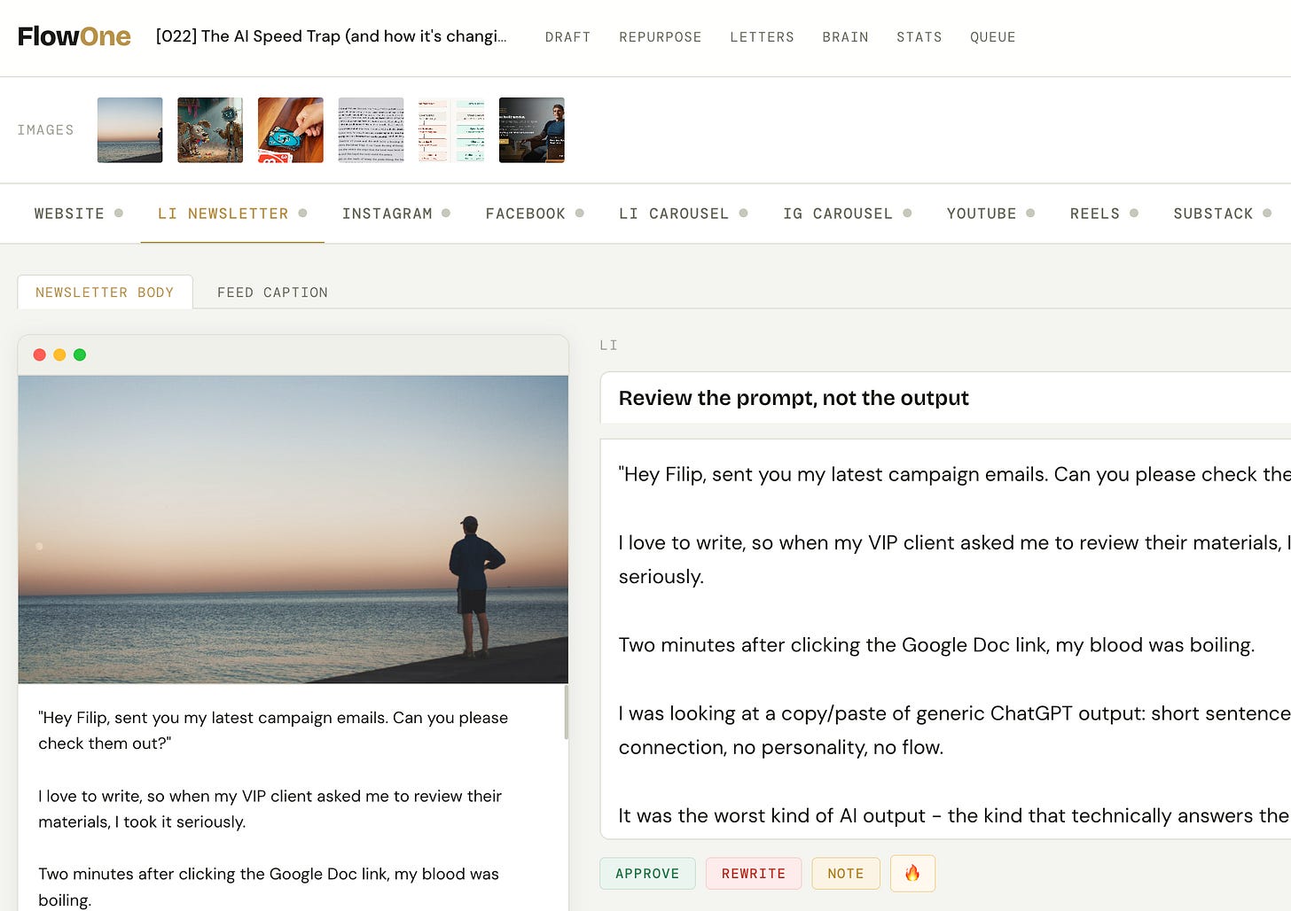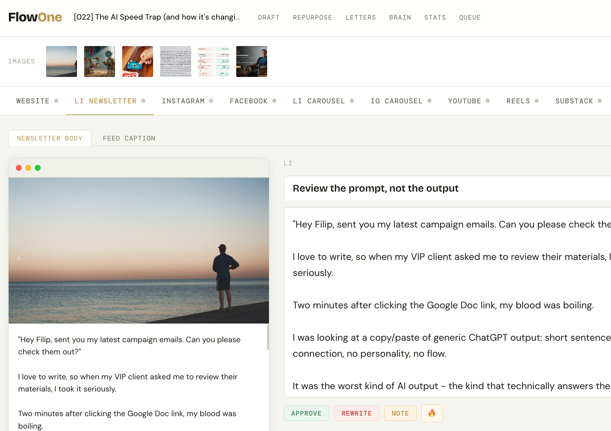 So, I wanted to see if I could create something where I can paste a Substack link (or copy my raw draft) and it creates content chunks while learning based on my feedback. That way I could “just” copy/paste raw materials and publish or schedule them on different socials.
